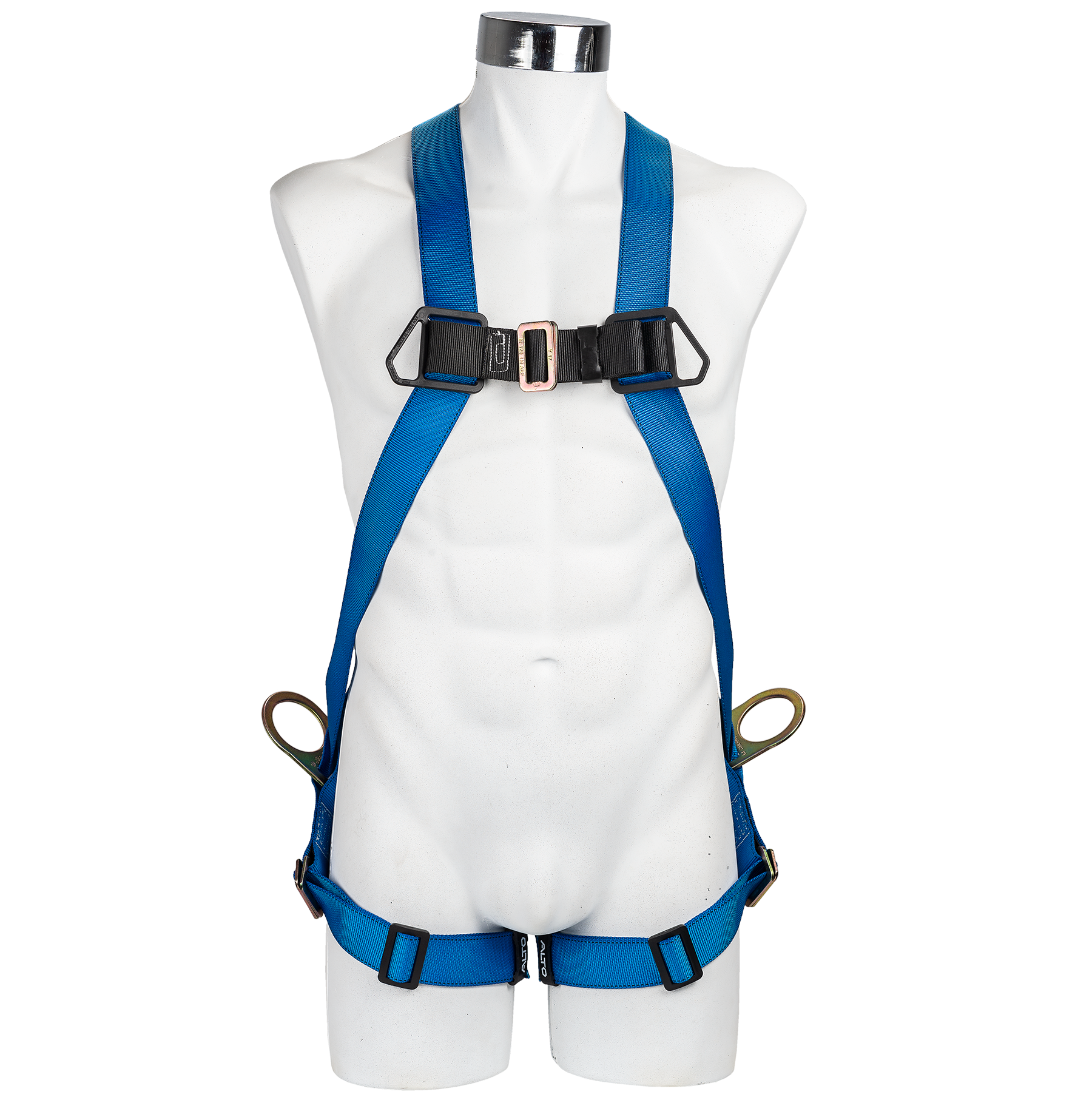 El arnés de posicionamiento ALTO en color azul y negro está diseñado para brindar protección confiable y comodidad en trabajos en altura. Fabricado en poliéster resistente, cuenta con un anillo de anclaje tipo “D” en la espalda y dos anillos tipo “D” en la cintura para una sujeción óptima. Las hebillas de conexión rápida y ajustables están hechas de acero estampado y tropicalizado, ofreciendo durabilidad y facilidad de uso.