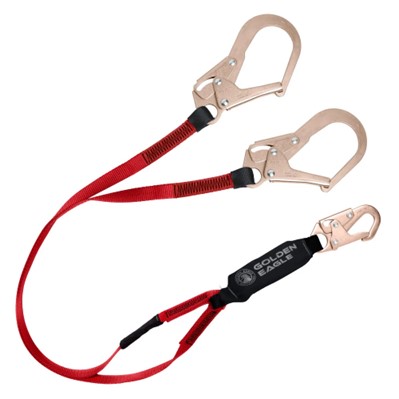 Amortiguador de impacto brazo doble de banda de poliéster de 1″ de ancho con gancho de acero de 3/4”. Tipo doble pierna con 2 ganchos grandes de 2 1/4”, ofrece el 100% de conexión.