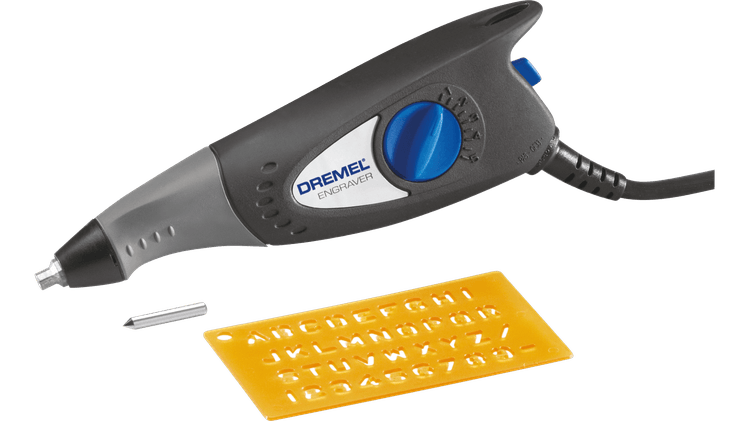 Incluye: 1 Dremel Engraver, 1 punta de grabado para madera, metal, cuero, plástico y goma (modelo 9924), 1 stencil plantilla de letras y números y manual.